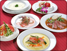 ・ファーストオードブル ・セカンドオードブル ・本日入荷した鮮魚のポワレ香草風味のポモドーロソースニース風 ・シェフお勧めの肉料理 ・デザートバイキング ・コーヒーorティー \6,000 |