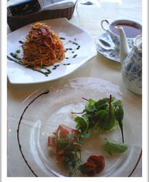 | ・本日のオードブル ・パスタチョイス (ポモドーロトマトパスタor厚切りベーコンのクリームパスタ) ・シェフデザート ・コーヒーorティー \1,800 |